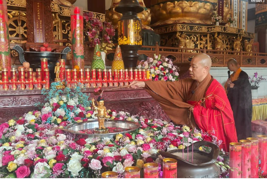 2025年5月5日,农历四月初八,是本师释迦牟尼佛圣诞纪念日。佛经记载:释迦牟尼佛在诞生时,一手指天一手指地,大地为之震动,天雨香花、九龙吐水。以是因缘,后世佛弟子以灌沐佛像的方式来纪念释迦牟尼佛的诞生,故佛诞日又名浴佛节。
