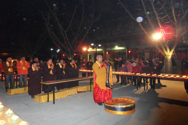 2014年2月14日(农历正月十五)晚,景会寺在大雄宝殿广场举行了“新年传灯祈福法会”。佛闻法师主法拈香, 带领四众弟子讽诵经咒及《传灯祈愿文》,并点燃了第一盏光明莲花灯,祈福音乐响起,一灯燃百千灯,愿大千众生,发菩提心,增益一切善法,传燃无尽心灯。法会功德回向国泰民安、社会和谐、风调雨顺、世界和平,人心向善,法脉昌隆,慧炬长明,普照十方。